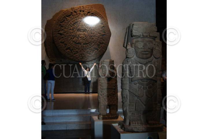 MÉXICO, D.F., 13AGOSTO2010.- El museo de Antropología conmemoró los 458 años de la caida de México-Tenochtitlan. La Piedral del Sol fue iluminada con los rayos del sol en la sala Mexica de este recinto. FOTO: INAH/CUARTOSCURO.COM