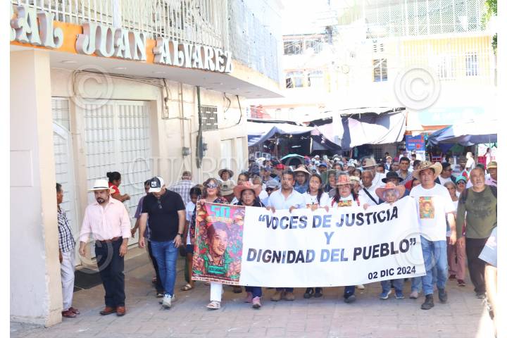 ATOYAC DE ALVAREZ, GUERRERO, 02DICIEMBRE2024.-Familiares de guerrilleros que participaron en el Movimiento Socialista Armado de México marcharon en este municipio para conmemorar la caída en combate de Lucio Cabañas el dos de diciembre de 1974 en la cañada del Otatal en el municipio de Tecpan de Galeana. La marcha fue encabezada por Micaela Cabañas Ayala, hija del maestro normalista, que después de la matanza del 18 de mayo de 1967 se remonto a la sierra cafetalera de este municipio para organizar el Partido de los Pobres y su Brigada Campesina de Ajusticiamiento que opero hasta su muerte. Los familiares de guerrilleros estuvieron acompañados por estudiantes de la Normal Rural de Ayotzinapa, familias de personas desaparecidas en la actualidad y lideres de organizaciones sociales de izquierda. La marcha concluyo con un mitin en el zócalo de la ciudad, a los pies del profesor Lucio Cabañas Barrientos. FOTO: MARGARITO PÉREZ RETANA/CUARTOSCURO.COM