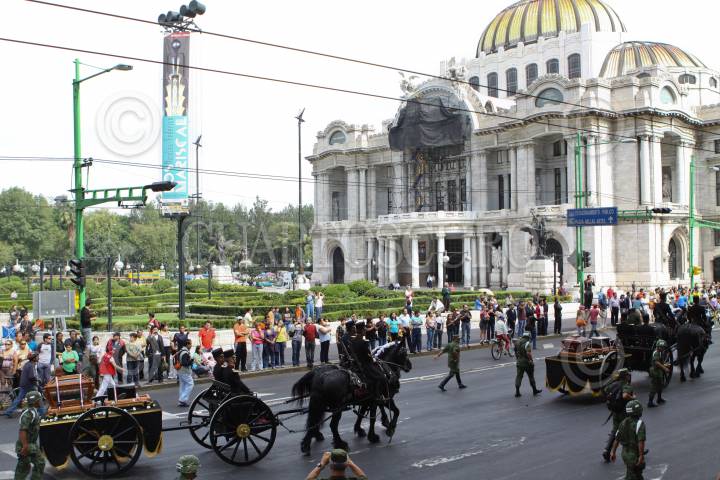 MÉXICO, D.F., 15AGOSTO2010.- La urnas de Miguel Hidalgo, Ignacio Allende, José María Morelos y Pavón, Víctor Rosales, Juan Aldama, Mariano Jiménez, Mariano Matamoros, Pedro Moreno, Francisco Javier Mina, Vicente Guerrero, Leona Vicario, Guadalupe Victoria, Andrés Quintana Roo y Nicolás Bravo fueron trasladados del Castillo de Chapultepec a Palacio Nacional en un desfile como parte de las conmemoraciones del Bicentenario de la Independencia. FOTO: RODOLFO ANGULO/CUARTOSCURO.COM