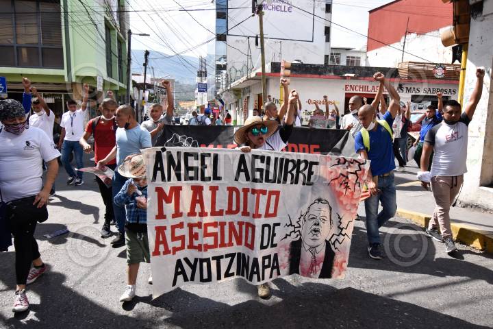 La marcha fue encabezada por los normalistas de Ayotzinapa.