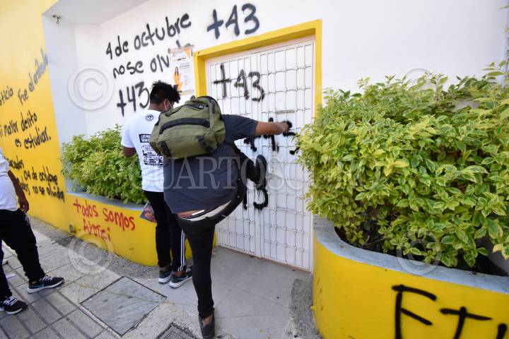 Normalistas realizan pintas en las instalaciones del PRD estatal.