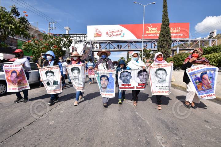 Los padres de los 43 normalistas desaparecidos de Ayotzinapa marcharon en la manifestación.