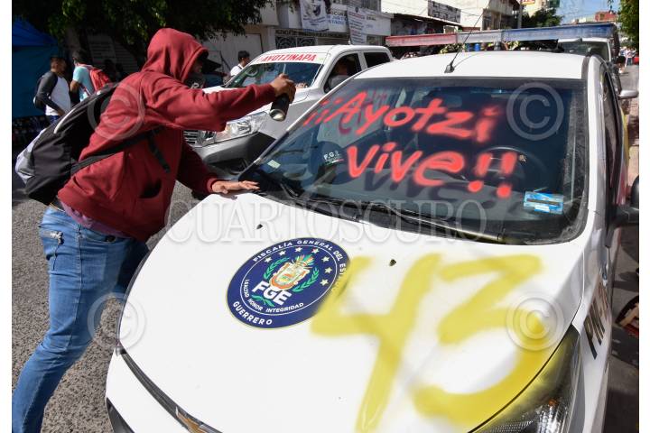 Manifestación de estudiantes normalistas en Chilpancingo.