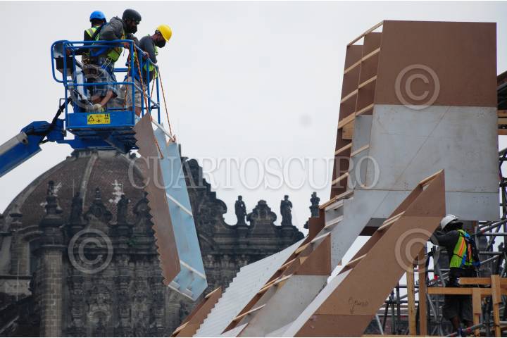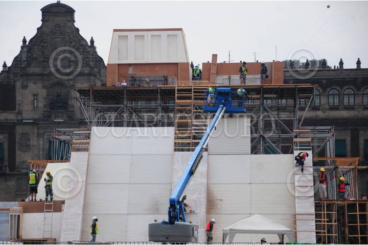 La pirámide está colocada justo enfrente de Palacio Nacional.