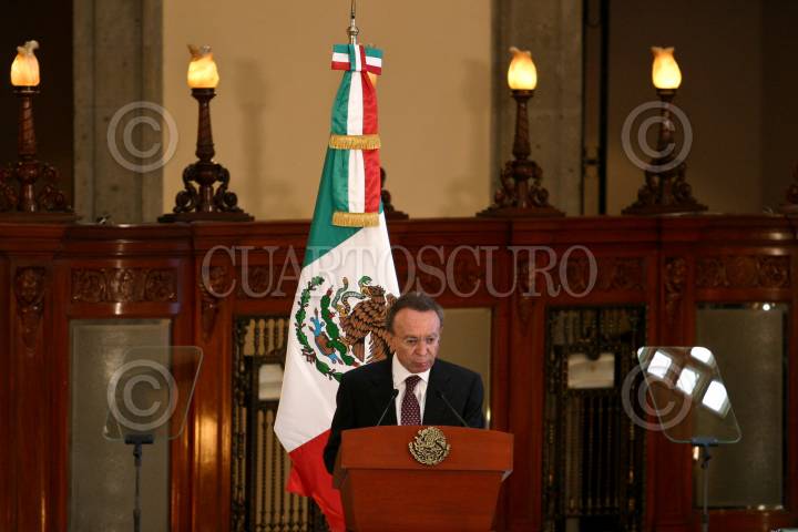 MÉXICO D.F., 23SEPTIEMBRE2009.- Guillermo Ortiz, gobernador del Banco de México durante su participación en el evento de la presentación de los billetes conmemorativos del Centenario de la Revolución y Bicentenario de la Independencia que se realizo en el Salón Tesorería de Palacio Nacional. FOTO: RODOLFO ANGULO/CUARTOSCURO.COM