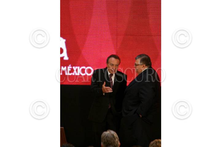 MÉXICO D.F., 23SEPTIEMBRE2009.- Guillermo Ortiz, gobernador del Banco de México conversa con Ignacio Deschamps, presidente y director general de BBVA Bancomer y presidente de la Asociación de Bancos de México previo al evento de la presentación de los billetes conmemorativos del Centenario de la Revolución y Bicentenario de la Independencia que se realizo en el Salón Tesorería de Palacio Nacional. FOTO: RODOLFO ANGULO/CUARTOSCURO.COM