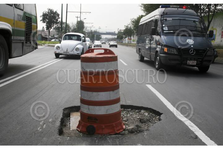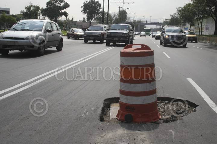 MÉXICO, D.F., 12SEPTIEMBRE2011.- Un cono de vialidad fue la solución para tapar un bache que se registro en la calzada Ermita Iztapalapa. FOTO: SAÚL LÓPEZ/CUARTOSCURO.COM