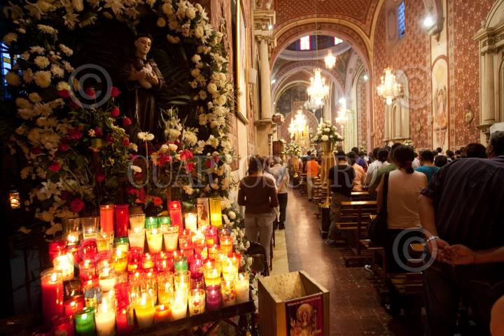 QUERETARO, QUERETARO, 13JUNIO2010.- Aspectos de la celebración del dia de San Antonio de Padua. En la iglesia que lleva su nombre en la capital del estado, los feligreses se reúnen a celebrarle al santo que también es conocido, de acuerdo con la Fé y el anectdotário cristianos por sus milagros en favor de las solteras para conseguirles novio. FOTO: DEMIAN CHÁVEZ/CUARTOSCURO.COM