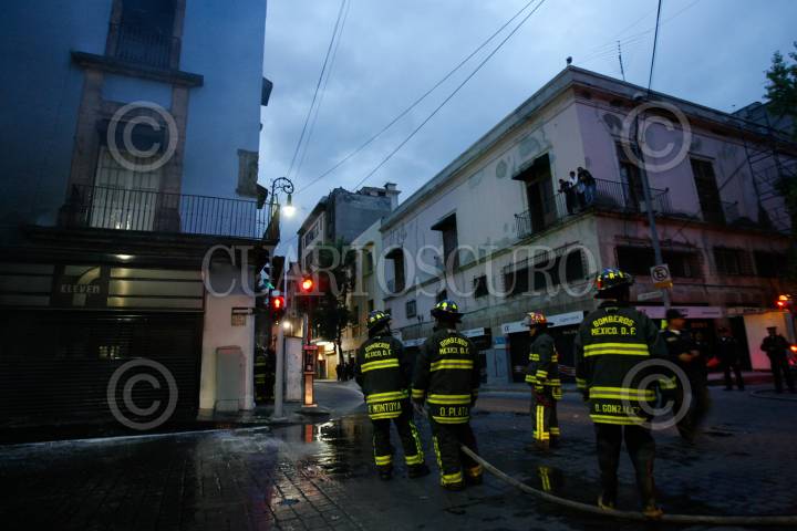 MEXICO, D.F., 02JULIO2010.- Se registro un incendio en un transformador subterráneo conocido como mofa en la esquina de las calles de Brasil y Donceles en el Centro Histórico en donde elementos del Heroico Cuerpo de Bomberos acudieron para apagarlas. FOTO: CUARTOSCURO.COM