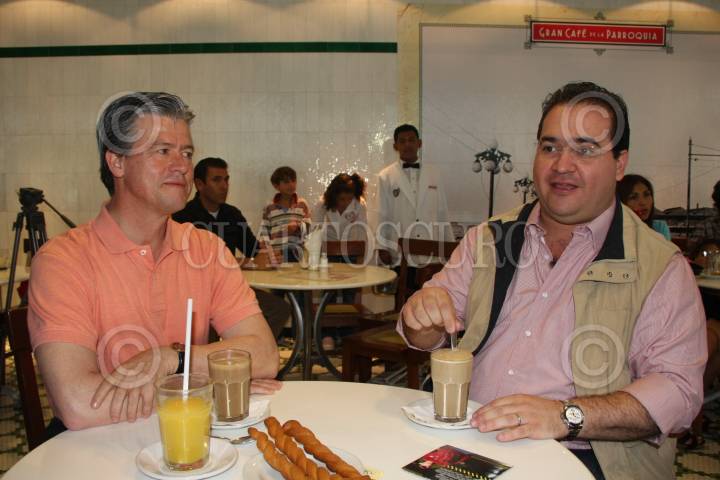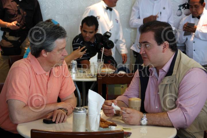 VERACRUZ, VERACRUZ. 29AGOSTO 2010.- Esta mañana se dieron cita para desayunar en conocido café de esta ciudad, el gobernador electo, Javier Duarte de Ochoa, y el ex panista, Gerardo Buganza Salmerón, quien fuera precandidato a la gubernatura por el blanquiazul. Encuentro donde el priista dejo entrever que, Buganza Salmerón, podría formar parte de su equipo de trabajo en el gobierno estatal. FOTO: JOSÉ CANDELARIO/CUARTOSCURO.COM