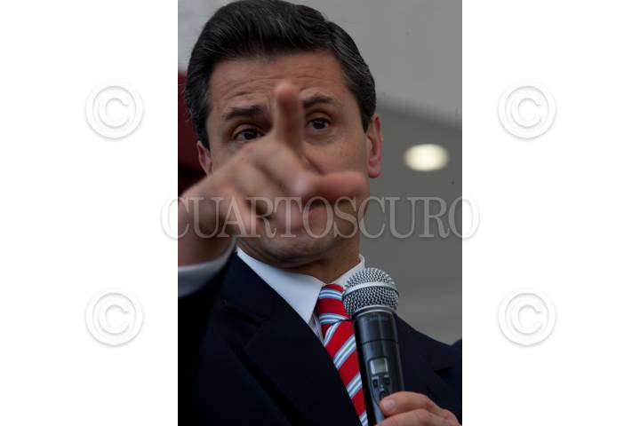 QUERÉTARO, QUERÉTARO, 05FEBRERO2011.- Enrique Paña Nieto, gobernador del Estado de México, acompañó a sus homólogos José Calzada gobernador de Querétaro y Carlos Lozano de Aguascalientes, en la inauguración del Centro de Convenciones que es un espacio de 32 mil metros cuadrados. Este inmueble mantiene aun la demanda por plagio por el arquitecto Teodoro González de León a quien en el sexenio anterior le retiraron la construcción del inmueble tras ganar la licitación. Hoy, el gobernador del estado le reconoció publicamente la autoría del también conocido como Ciudad de las Artes. FOTO: DEMIAN CHÁVEZ/CUARTOSCURO.COM