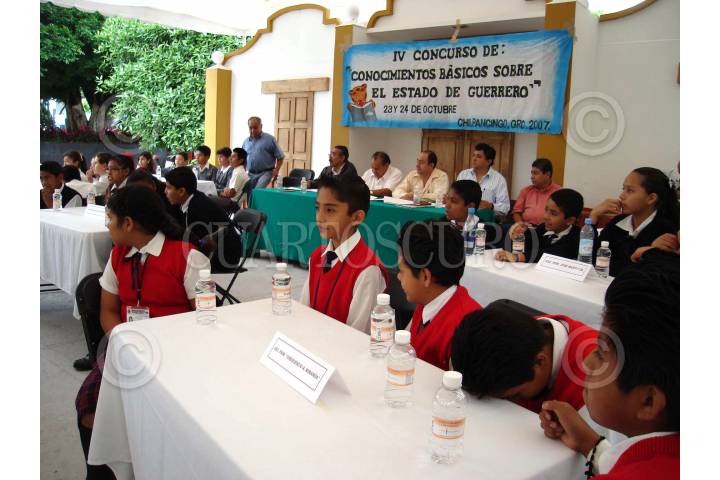 CHILPANCINGO, GUERRERO., 24OCTUBRE2007.- Aspecto general del IV Concurso de "Conocimientos Basicos sobre el Estado de Guerrero" nivel primaria, realizado en el zócalo capitalino, esto como parte de los festejos por el 158 aniversario de la fundación del estado de Guerrero. FOTO: OSCAR ALVARADO/CUARTOSCURO.COM