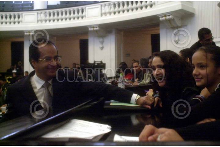 México, D.F. 31DIC2003.- René Bejarano, presidente de la fracción parlamentaria del PRD en la ALDF, acompañado de su esposa, Dolores Padierna (diputada PRD) y su hija, durante la sesión de cierre de labores de este año en la Asamblea Legislativa del DF. FOTO: Sandra Perdomo/CUARTOSCURO.COM
