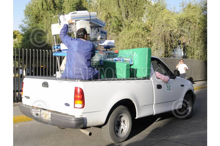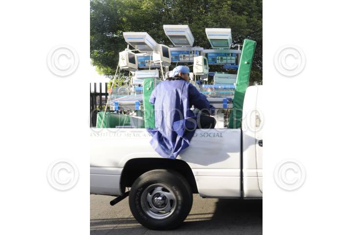 MÉXICO D.F., 20MARZO2012.- Tras el sismo ocurrido al medio día, el edificio de la Clínica de Ginecopediatría 3A, que está ubicado en Avenida Politécnico Nacional sufrió varios daños severos, provocando el desalojo de los pacientes internados. Algunos pacientes tuvieron que ser dados de alta, los demás son trasladados a otros hospitales, varios médicos y enfermeros fueron trasladados con sus pacientes, así como equipo médico. Las familias de las victimas acudieron al lugar para saber de sus enfermos pero a la mayoría les fue negado el acceso. FOTO: DIEGO SIMÓN SÁNCHEZ /CUARTOSCURO.COM