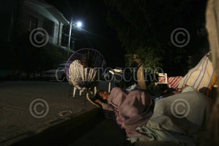 PINOTEPA NACIONAL, OAXACA, 21MARZO2012.- Debido a los daños sufridos en sus hogares por el temblor de 7.9 grados Richter, diversas familias decidieron pernoctar ya sea en las calles o patios de sus casas, esto ante el temor de que se presente un nuevo temblor. Familias enteras pasaron la noche en vela en el municipio de Pinotepa Nacional. FOTO: ARTURO PEREZ ALFONSO /CUARTOSCURO.COM