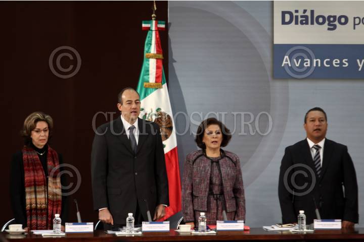 MÉXICO, D.F., 12ENERO2011.- Graciela Garcia Bringas, consejera de Ciudadanos por una Causa en Comun A.C., Arturo Chávez, Chávez, procurador General de la República; Isabel Miranda de Wallace, presidenta de Alto al Secuestro y José Francisco Blake Mora, secretario de Gobernación durante el evento Diálogos por México, Avances y Compromisos que se realizo en el Campo Marte. FOTO: RODOLFO ANGULO/CUARTOSCURO.COM