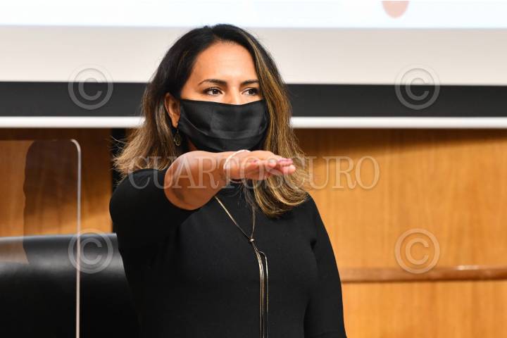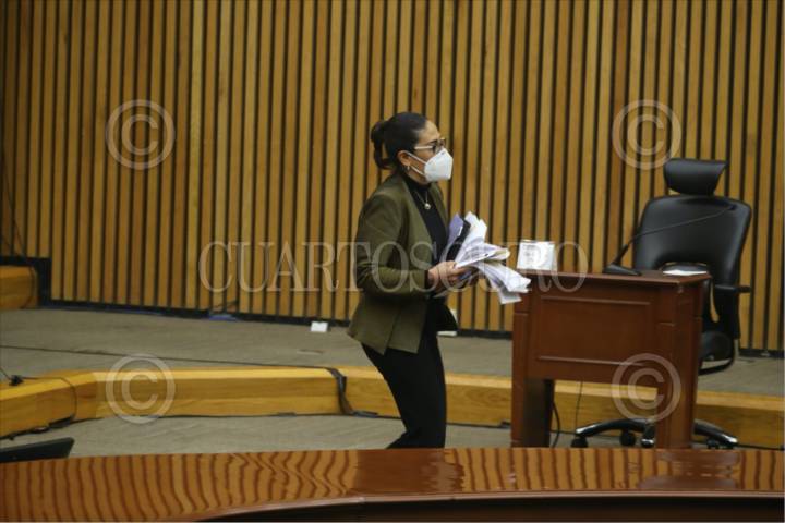 Claudia Zavala Pérez, Consejera Electoral, abandonó el salón de sesiones luego de que Gerardo Fernández Noroña se negará a usar cubreboca durante los trabajos.