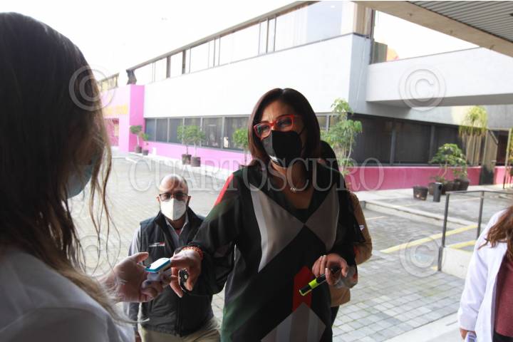 La consejera Claudia Zavala pasa por un filtro sanitario para participar en la sesión extraordinaria en el INE.