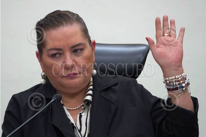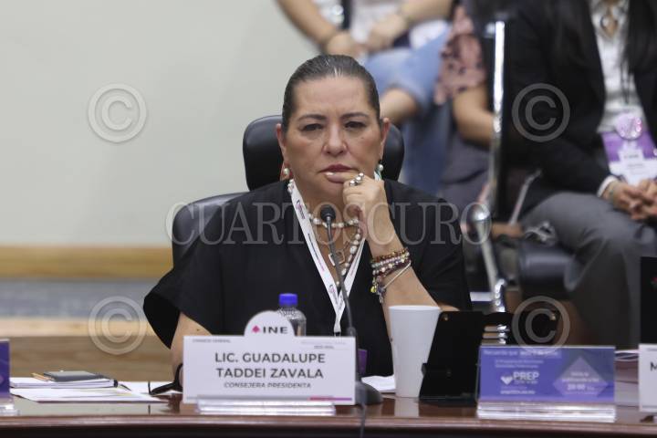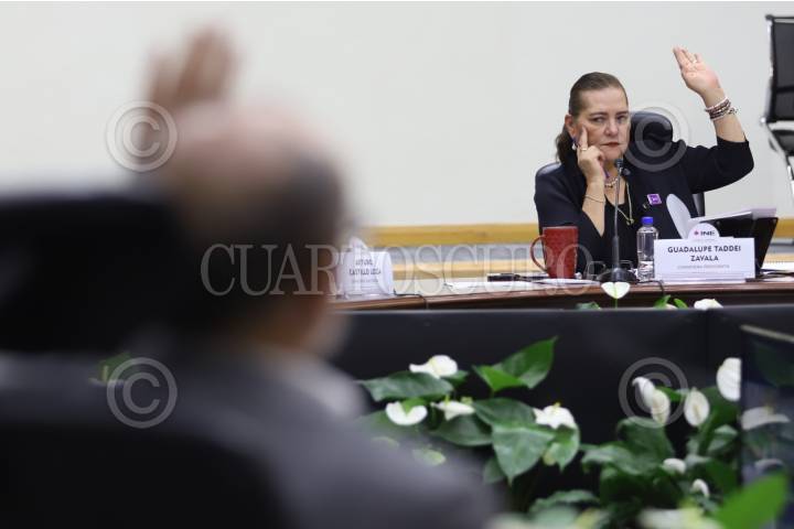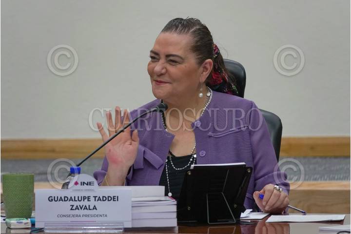 CIUDAD DE MÉXICO, 18JUNIO2025.- Guadalupe Taddei, consejera presidenta del INE, durante la votación de este miércoles en el Instituto, donde invalidaron las victorias de candidatos a magistrados que no alcanzaron el promedio de 8 y aún así participaron en las elecciones judiciales. FOTO: DANIEL AUGUSTO/ CUARTOSCURO.COM