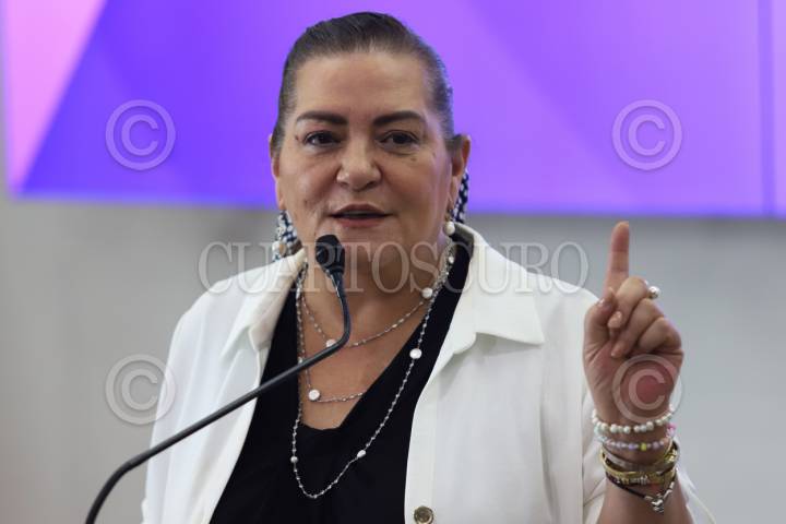 CIUDAD DE MÉXICO, 11SEPTIEMBRE2024.- Guadalupe Taddei, consejera presidenta del INE, escucha los discursos de los representantes de organizaciones electorales. FOTO: DANIEL AUGUSTO/ CUARTOSCURO.COM