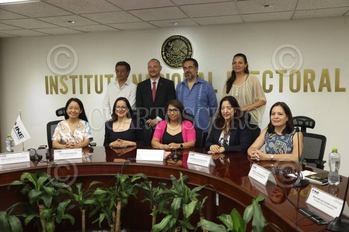 CIUDAD DE MÉXICO. 09MAYO2025.El Instituto Nacional Electoral (INE) que preside Guadalupe Taddei en la Firma de Convenio de Colaboración con el Instituto Politécnico Nacional (IPN) con Isaac Luna y con la Universidad Autónoma Metropolitana (UAM), representado por Francisco j. Soria en el marco del Proceso Electoral Extraordinario del Poder Judicial de la Federación 2024-2025 y se llevó acabó en el Lobby del INE. Asistió el Maestro en Ciencias Filiberto Vázquez inventor de la tinta indeleble que se aplica después de votar y evita que se sufrague más de una vez. FOTO: VICTORIA VALTIERRA/CUARTOSCURO.COM
