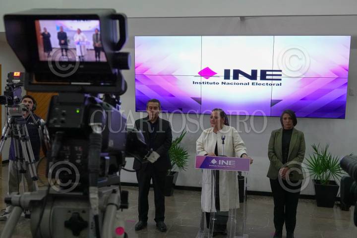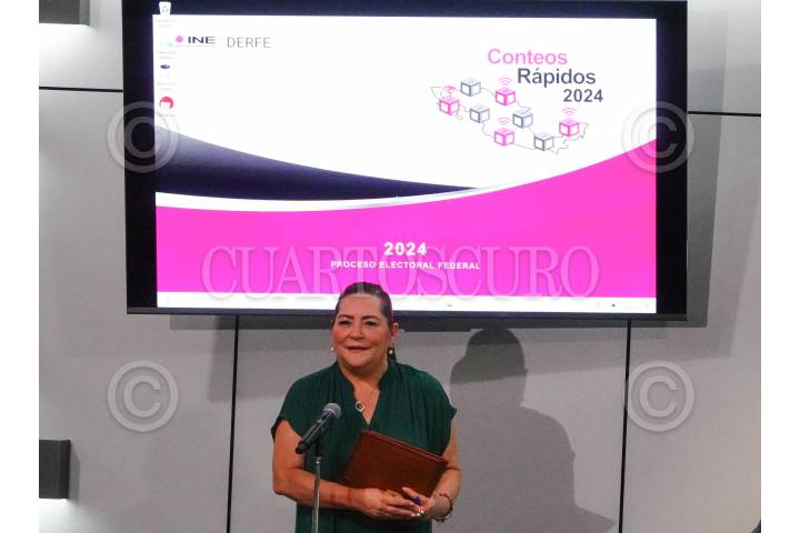 CIUDAD DE MÉXICO,31MAYO2024.- Guadalupe Taddei, consejera presidenta del Instituto Nacional Electoral (INE), encabezó la presentación de Selección de las Muestras para los Conteos Rápidos de los Procesos Electorales Federal y Locales 2023-2024 desde el Auditorio del instituto. FOTOS: ROGELIO MORALES /CUARTOSCURO.COM