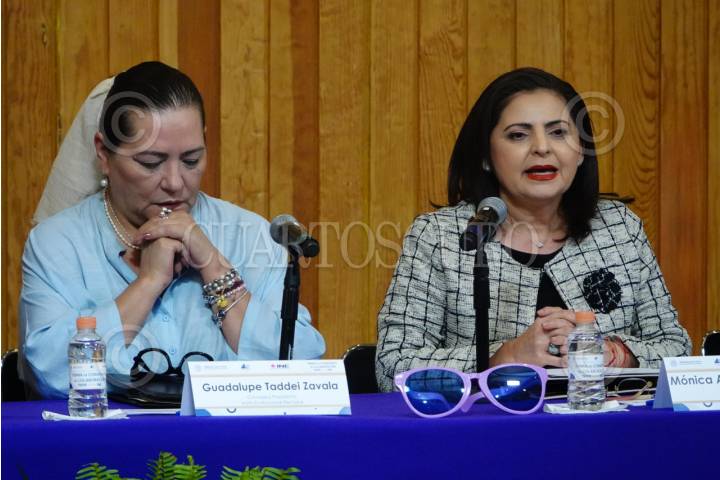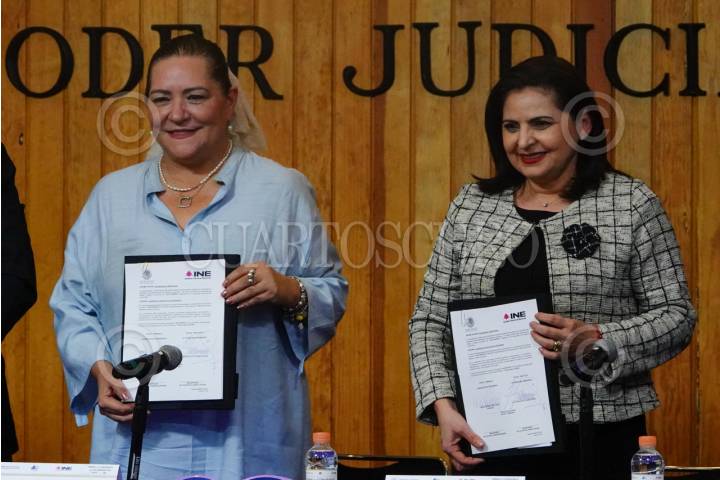CIUDAD DE MÉXICO, 08MAYO2024.- Monica Soto, magistrada presidenta del Tribunal Electoral del Poder Judicial de la Federación y Guadalupe Taddei, consejera presidenta del Instituto Nacional Electoral, encabezaron la firma de convenios para las Elecciones 2024. FOTOS: ROGELIO MORALES /CUARTOSCURO.COM