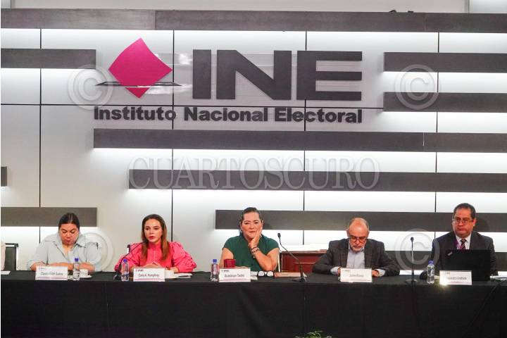 CIUDAD DE MÉXICO, 16MAYO2024.- Guadalupe Taddei Zavala, consejera presidenta del Instituto Nacional Electoral (INE), Dania Paola Ravel, Arturo Castillo y Norma de la Cruz, consejeros electorales, encabezaron la sesión extraordinaria del INE en la sede del instituto. FOTOS: ROGELIO MORALES /CUARTOSCURO.COM