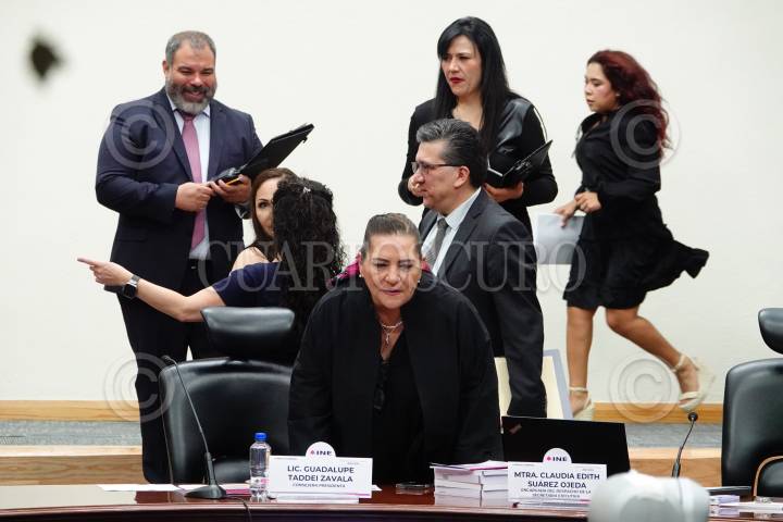 CIUDAD DE MÉXICO, 27JUNIO2024.- Guadalupe Taddei Zavala e Ivonne Ortega, durante la sesión ordinaria del INE en la sede del instituto. FOTOS: ROGELIO MORALES /CUARTOSCURO.COM