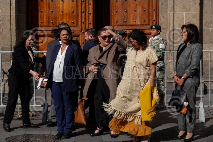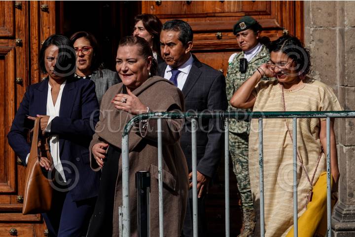 CIUDAD DE MÉXICO, 09ENERO2025.- Las consejeras electorales Norma Irene De la Cruz, Guadalupe Taddei (presidenta), Rita Bell López y Claudia Zavala tras su salida de Palacio Nacional tras la reunión con la presidenta Claudia Sheinbaum para discutir la solicitud de ampliación al presupuesto con motivo de las elecciones del Poder Judicial. FOTO: GALO CAÑAS/CUARTOSCURO.COM