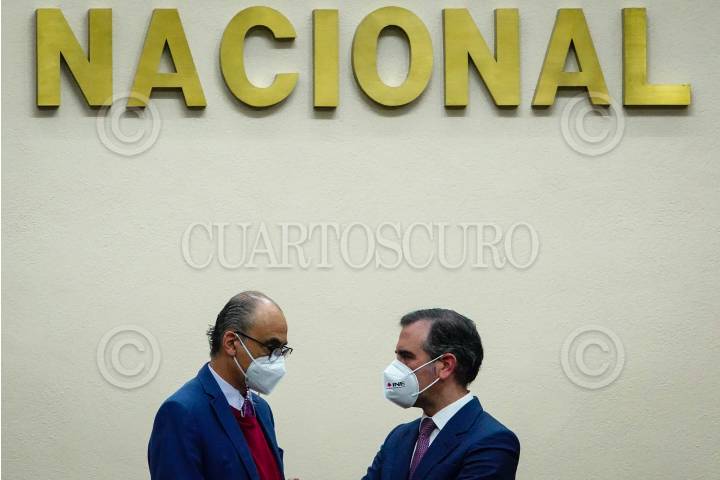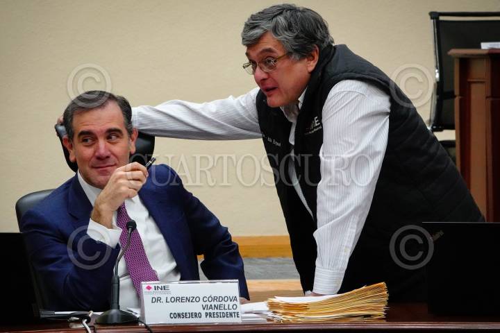 Lorenzo Córdova y Uuc-kib Espadas, durante la sesión extraordinaria del consejo del Instituto Nacional Electoral.