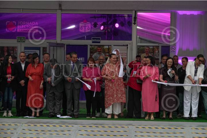 CIUDAD DE MÉXICO 31MAYO2025.- Guadalupe Taddei Zavala, consejera presidenta, acompañada de Norma Irene de la Cruz Magaña, Rita Bell López Vences, consejeras electorales y reporteros que cubren la fuente de diversos medios, encabezaron la nauguración de la Sala de Prensa, para la jornada del Proceso Electoral Extraordinario para la elección de diversos cargos del Poder Judicial de la Federación 2024-2025 en el Instituto Nacional Electoral. FOTO: ROGELIO MORALES CUARTOSCURO.COM