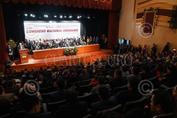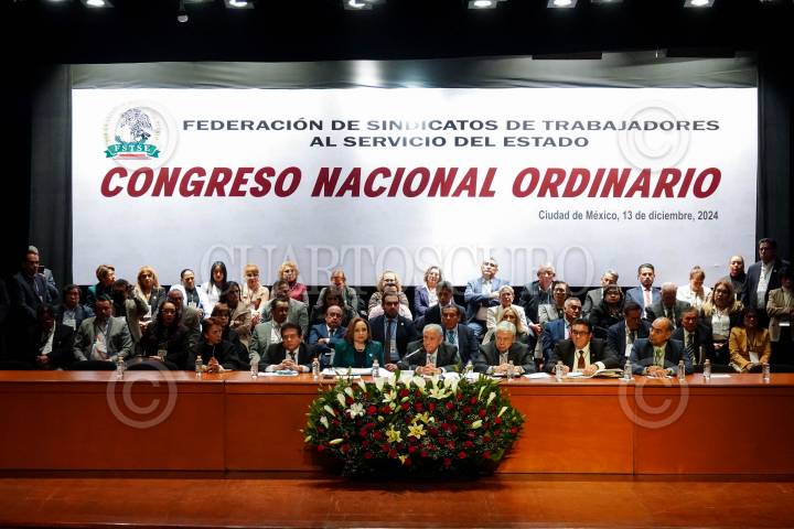 CIUDAD DE MÉXICO, 13DICIEMBRE2024.- Joel Ayala Almeida, presidente de Federación de Sindicatos de Trabajadores al Servicio del Estado (FSTSE), encabezó la sesión del Congreso Nacional Ordinario en la sede central del organismo. En la que se dio parte de las actividades, gastos y acciones durante el 2024. FOTO: GALO CAÑAS/CUARTOSCURO.COM