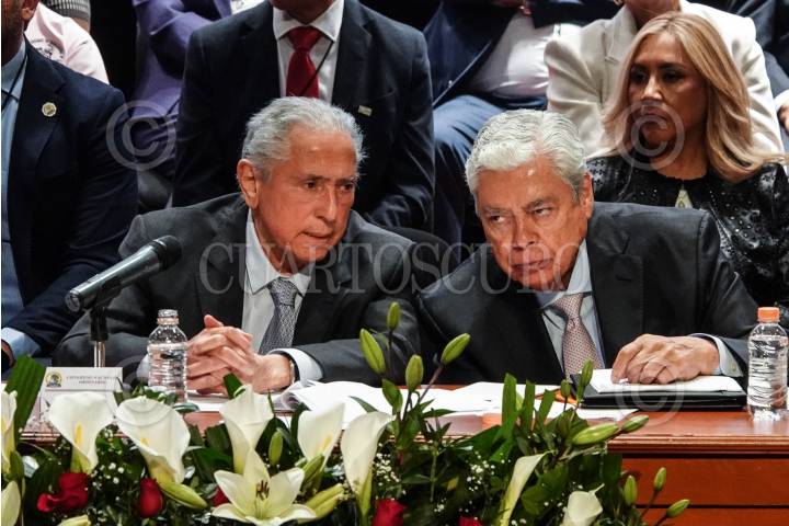 CIUDAD DE MÉXICO, 13DICIEMBRE2024.- Joel Ayala Almeida, presidente de Federación de Sindicatos de Trabajadores al Servicio del Estado (FSTSE), y Jesús Ernesto Moreno Morales, Director del Secretariado Técnico y Representante de la FSTSE, encabezaron la sesión del Congreso Nacional Ordinario en la sede central del organismo. En la que se dio parte de las actividades, gastos y acciones durante el 2024. FOTO: GALO CAÑAS/CUARTOSCURO.COM