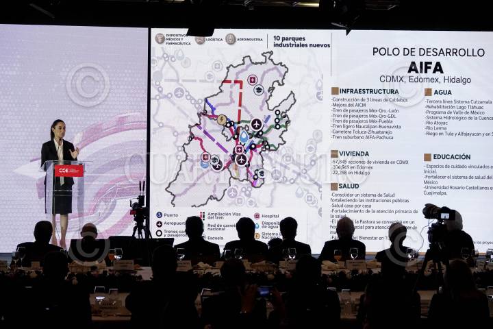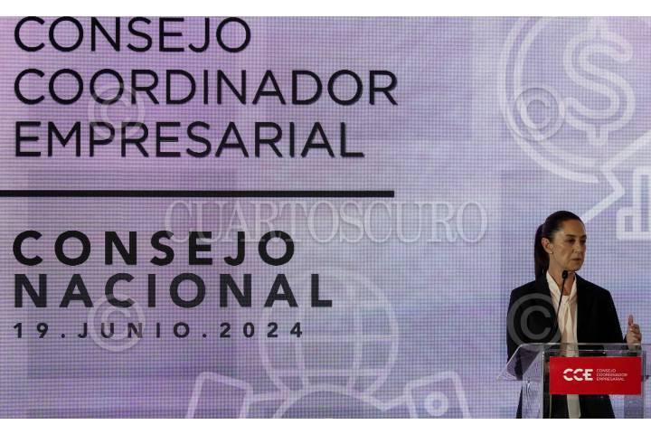 CIUDAD DE MÉXICO, 19JUNIO2024.- Claudia Sheinbaum, presidenta electa de México, participó en la Reunión Anual del Consejo Coordinador Empresarial en la que expuso su propuesta para mantener las inversiones y el llamado a las y los empresario a continuar el diálogo para el desarrollo del país. FOTO: GALO CAÑAS/CUARTOSCURO.COM