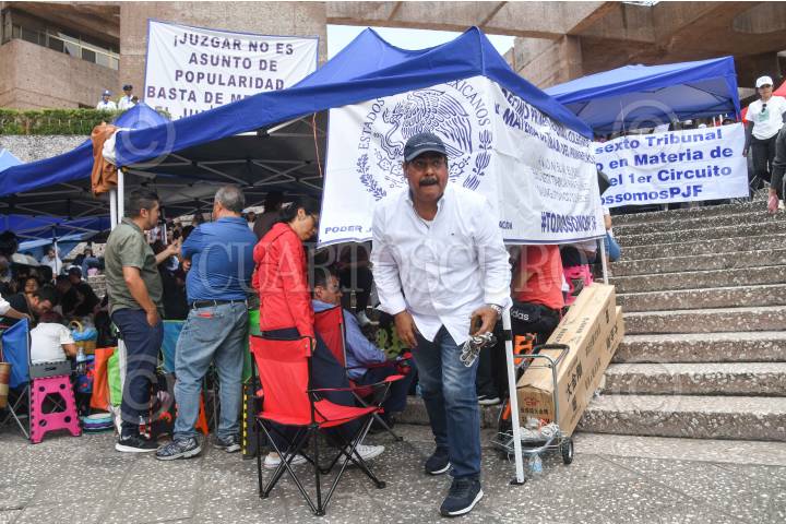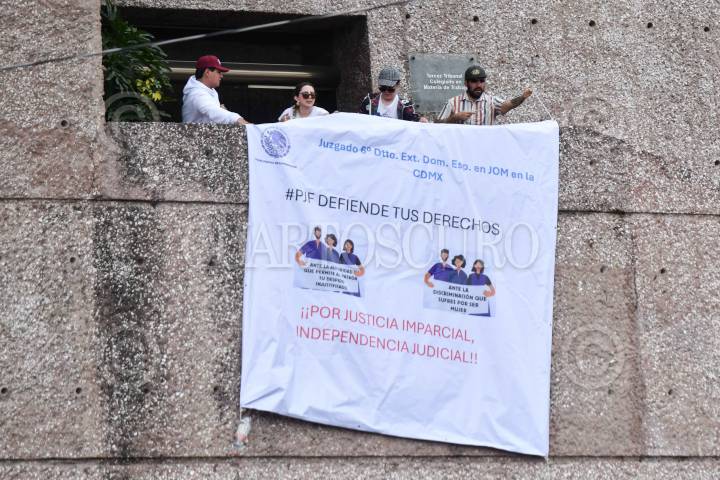 CIUDAD DE MÉXICO, 22AGOSTO2024.- Plantón de trabajadores del Poder Judicial de la Federación (PJF) en la sede del Consejo de la Judicatura Federal (CJF) San Lázaro, quienes se manifiestan en contra de la iniciativa de reforma al Poder Judicial. FOTO: MARIO JASSO/CUARTOSCURO.COM