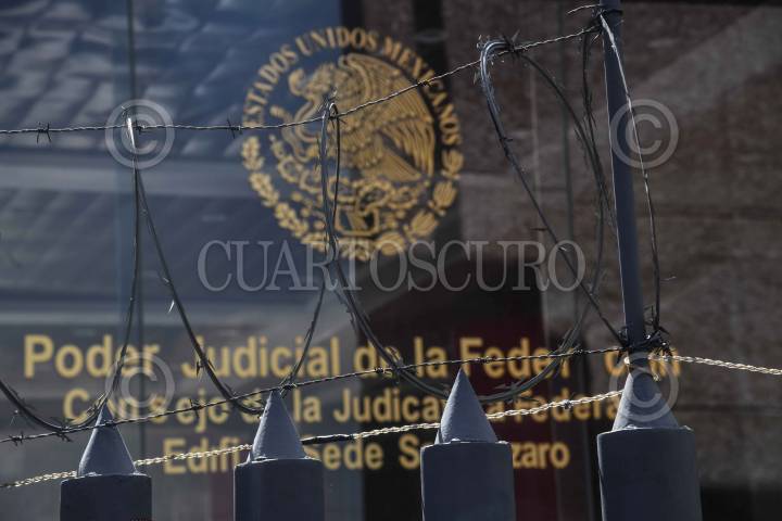CIUDAD DE MÉXICO, 22AGOSTO2024.- Alambres de púas en la fachada principal del Poder Judicial de la Federación (PJF) sede del Consejo de la Judicatura Federal (CJF) San Lázaro, en donde trabajadores se manifiestan en contra de la iniciativa de reforma al Poder Judicial. FOTO: MARIO JASSO/CUARTOSCURO.COM