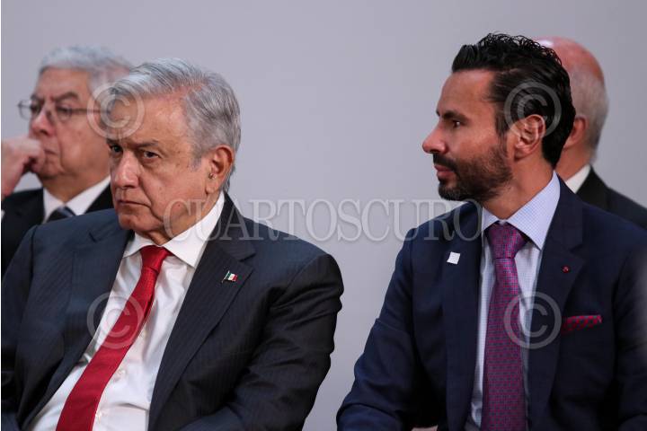 CIUDAD DE MÉXICO, 03SEPTIEMBRE2019.- Andrés Manuel López Obrado, presidente de México, y Federico Lopez Otegui, presidente saliente del Consejo de la Comunicación, durante la ceremonia de cambio de titular de dicha institución. FOTO: GALO CAÑAS /CUARTOSCURO.COM