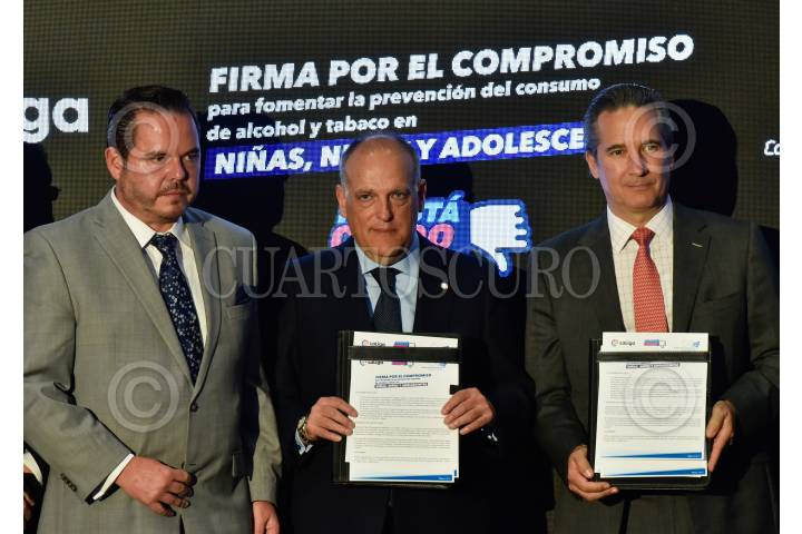 Firma de Convenio entre La Liga Española de Fútbol y el Consejo de la Comunicación, en el que se comprometen a fomentar la prevención del consumo de alcohol y tabaco en niños y niñas, mediante la campaña “No Está Chido”.