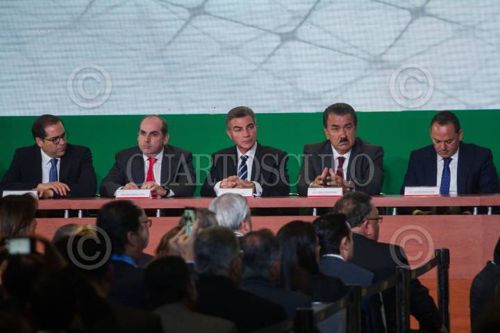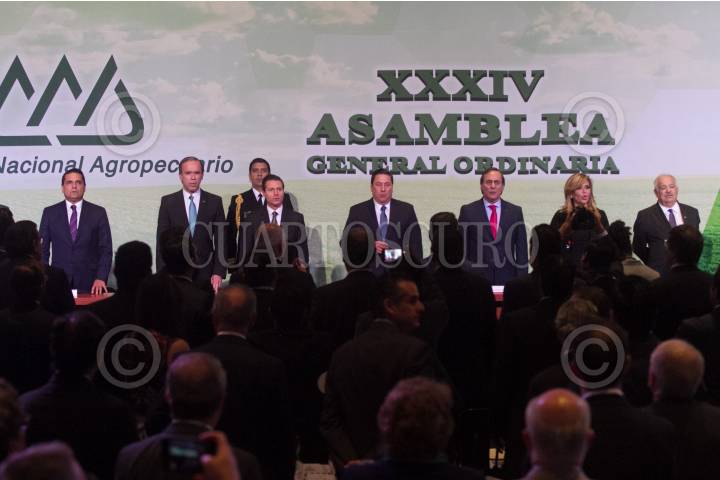 CIUDAD DE MÉXICO, 02FEBRERO2017.- José Ignacio Peralta Sánchez, gobernador de Nayarit, Roberto Ramírez de la Parra, director de la Comisión Nacional del Agua, Antonio Gali Faya, gobernador de Puebla, y el diputado Germán Escobar Manjarrez, durante la XXXIII Asamblea General Ordinaria del Consejo Nacional Agropecuario. FOTO: ISAAC ESQUIVEL /CUARTOSCURO.COM