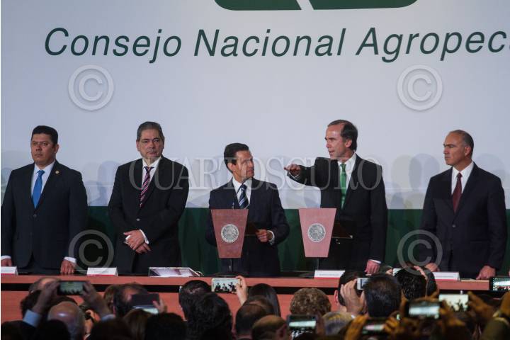 CIUDAD DE MÉXICO, 02FEBRERO2017.- Enrique Peña Nieto, presidente de México, tomó protesta a Bosco de la Vega Valladolid, presidente entrante del Consejo Nacional Agropecuario, durante a XXXIII Asamblea General Ordinaria de dicho consejo. FOTO: ISAAC ESQUIVEL /CUARTOSCURO.COM