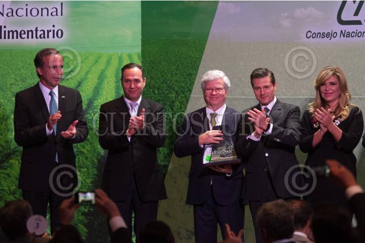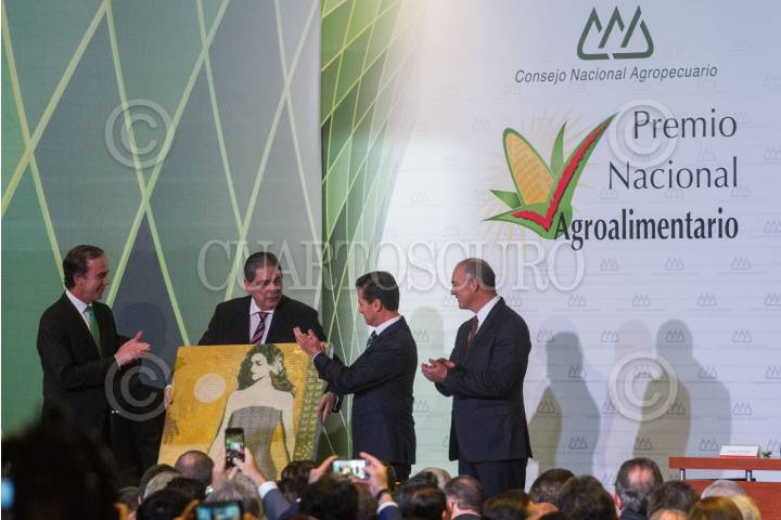 CIUDAD DE MÉXICO, 08MAYO2018.- La empresa Bachoco recibió el Premio Nacional Agroalimentario, durante la Asamblea Ordinaria del Consejo Nacional Agropecuario, que contó con la presencia del Jefe del Ejecutivo, Enrique Peña Nieto. En la imagen también se observa a Bosco de la Vega, líder del CN, y Claudia Pavlovich, gobernadora de Sonora. FOTO: MOISÉS PABLO /CUARTOSCURO.COM