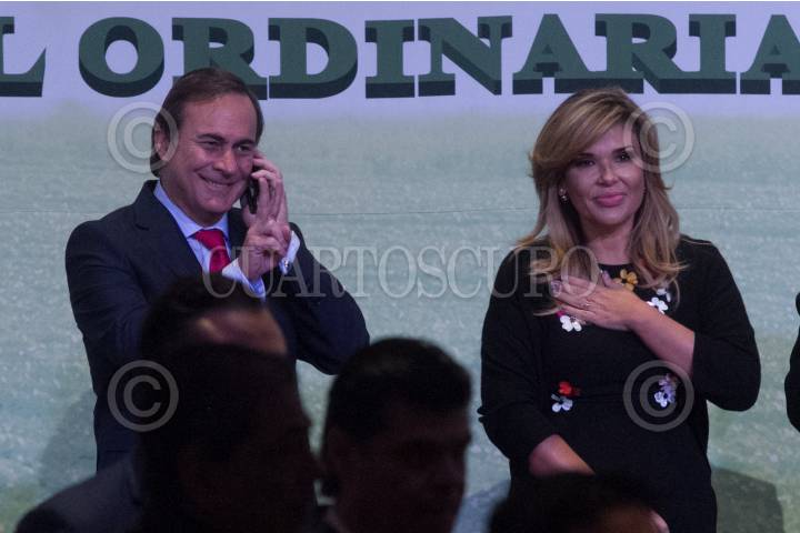 CIUDAD DE MÉXICO, 08MAYO2018.- Juan Pablo Castañón, líder del Consejo Coordinador Empresarial, y Claudia Pavlovich, gobernadora de Sonora, durante la Asamblea Ordinaria del Consejo Nacional Agropecuario, que contó con la presencia del Jefe del Ejecutivo, Enrique Peña Nieto. FOTO: MOISÉS PABLO /CUARTOSCURO.COM