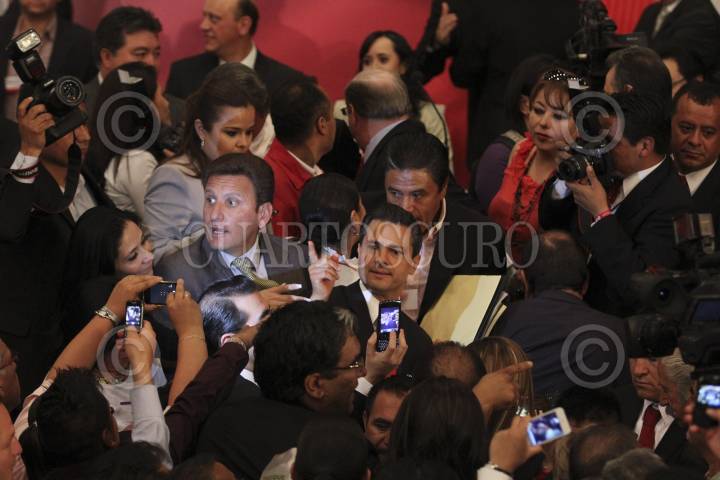 MÉXICO, D.F., 25MAYO2012.- Enrique Peña Nieto, candidato del PRI a la presidencia de la república, a su salida del XXX Sesión Extraordinaria del Consejo Político Nacional del PRI. FOTO: SAÚL LÓPEZ /CUARTOSCURO.COM