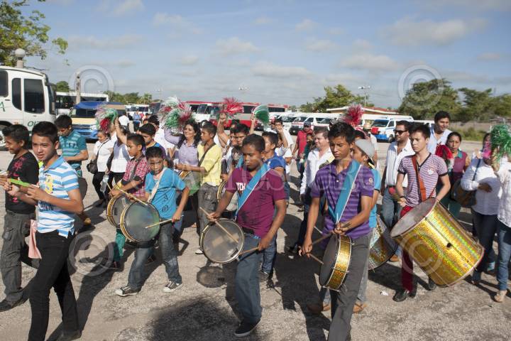 VILLAHERMOSA, TABASCO, 04OCTUBRE2014.- Cientos de simpatizantes del PRI en distintos municipios llegaron acarreados en autobuses y combis al evento de la toma de protesta del consejo político del tricolor estatal que se efectuó en la nave tres del parque Tabasco. FOTO: MARCO POLO GUZMÁN HERNÁNDEZ /CUARTOSCURO.COM