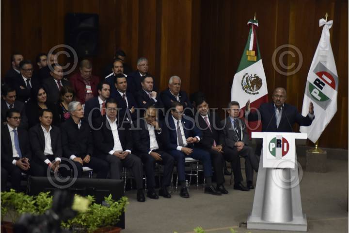 CIUDAD DE MÉXICO, 21NOVIEMBRE.- Alfredo del Mazo, gobernador del Estado de México, durante la Sesión Solemne de Instalación del VII Consejo Político Nacional y XLIX Sesión Extraordinaria en el Auditorio “Plutarco Elías Calles” en la sede del parido. FOTO: ROGELIO MORALES /CUARTOSCURO.COM