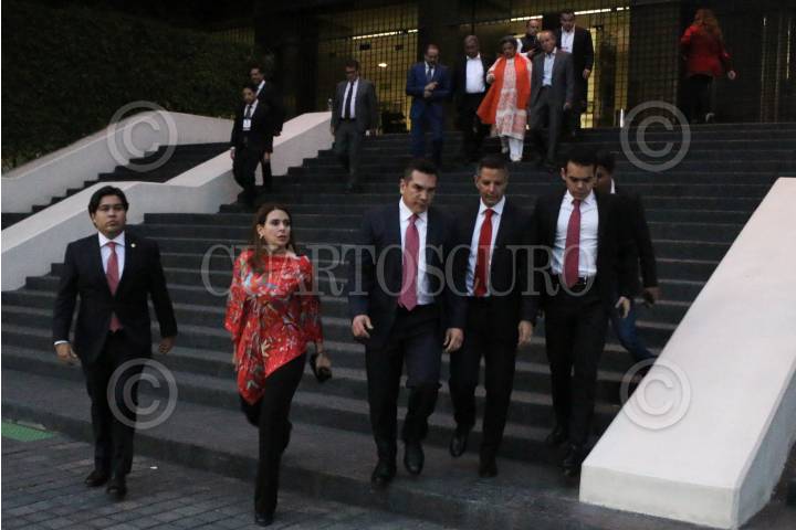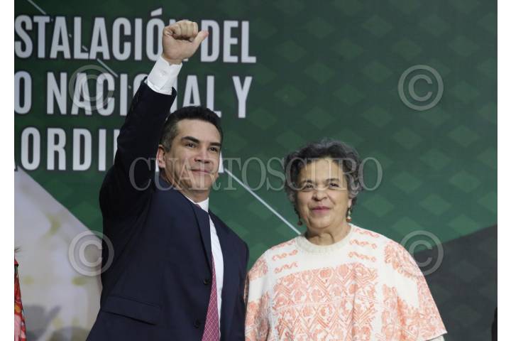 CIUDAD DE MÉXICO, 21NOVIEMBRE.- Carolina Viggiano, secretaria general del PRI y Alejandro Moreno, presidente nacional del Parido Revolucionario Institucional, durante la Sesión Solemne de Instalación del VII Consejo Político Nacional y XLIX Sesión Extraordinaria en el Auditorio “Plutarco Elías Calles” en la sede del parido. FOTO: ROGELIO MORALES /CUARTOSCURO.COM