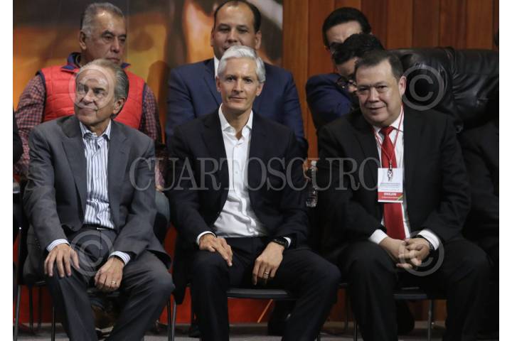 CIUDAD DE MÉXICO, 21NOVIEMBRE.- Alejandro Murat Hinojosa, gobernador de Oaxaca; José Ignacio Peralta, gobernador de Colina y Omar Fayad, gobernador de Hidalgo durante la Sesión Solemne de Instalación del VII Consejo Político Nacional y XLIX Sesión Extraordinaria en el Auditorio “Plutarco Elías Calles” en la sede del parido. FOTO: ROGELIO MORALES /CUARTOSCURO.COM