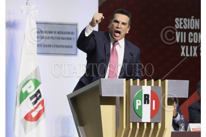 CIUDAD DE MÉXICO, 21NOVIEMBRE.- Alejandro Moreno, presidente nacional del Parido Revolucionario Institucional, durante la Sesión Solemne de Instalación del VII Consejo Político Nacional y XLIX Sesión Extraordinaria en el Auditorio “Plutarco Elías Calles” en la sede del parido. FOTO: ROGELIO MORALES /CUARTOSCURO.COM
