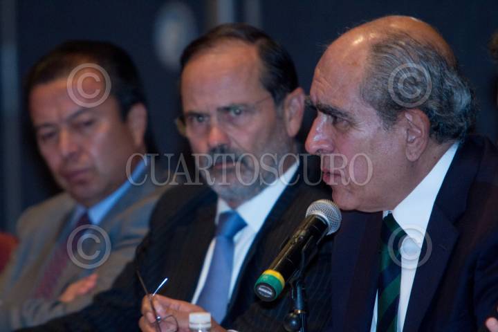 MÉXICO, D.F., 22MAYO2013.- Cesar Camacho Quiroz, Líder Nacional del PRI junto a Gustavo Madero, Líder del PAN y Pablo Gómez, Representante del PRD ante el Pacto por México durante la reunión que mantuvieron los integrantes del Consejo Rector del Pacto por México con Integrantes del Sindicato Nacional de Trabajadores del Estado. FOTO: ENRIQUE ORDÓÑEZ /CUARTOSCURO.COM